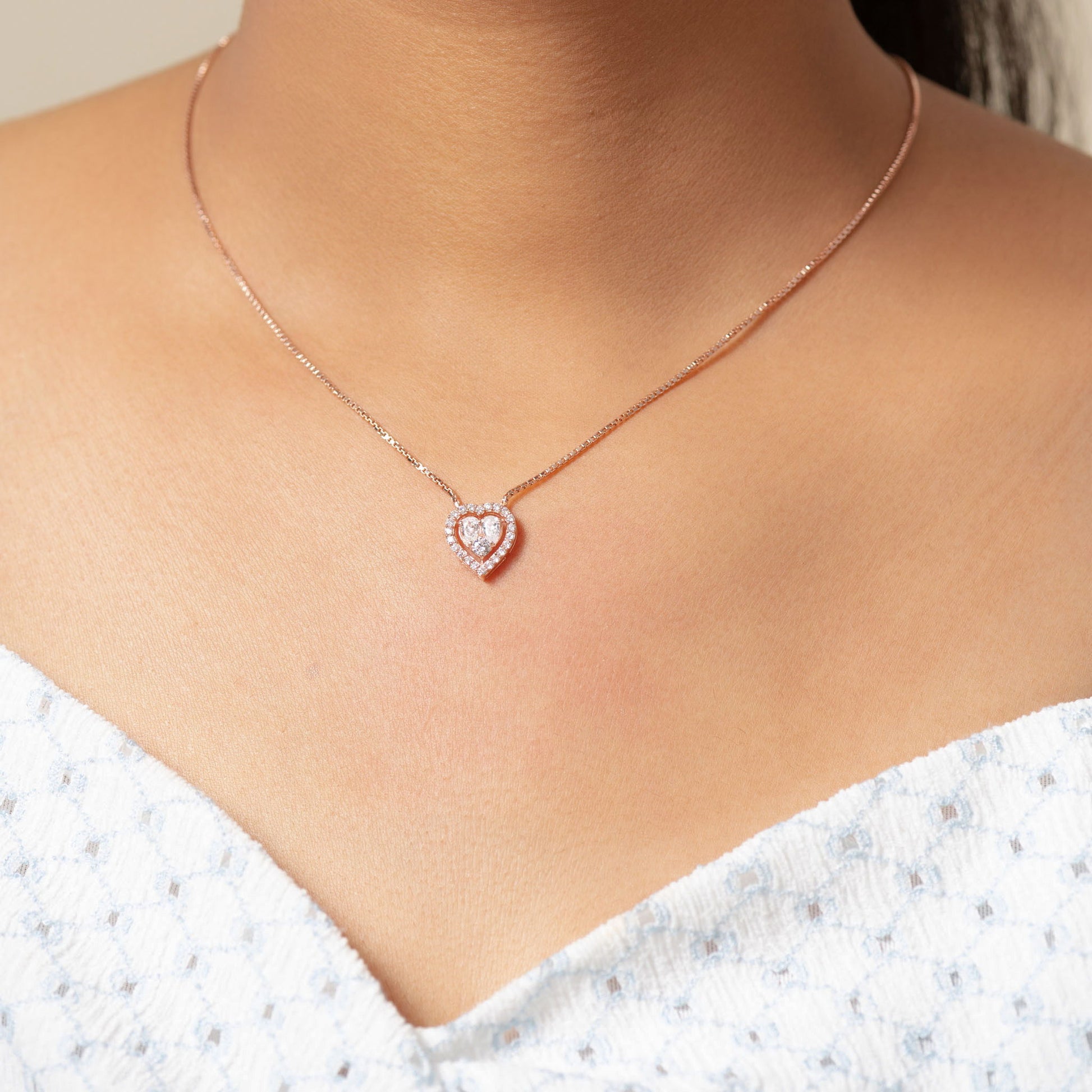 Enchanted Halo Valentine Heart Pendant (Rose Gold) 925 Silver for Women | Ivaana Silver