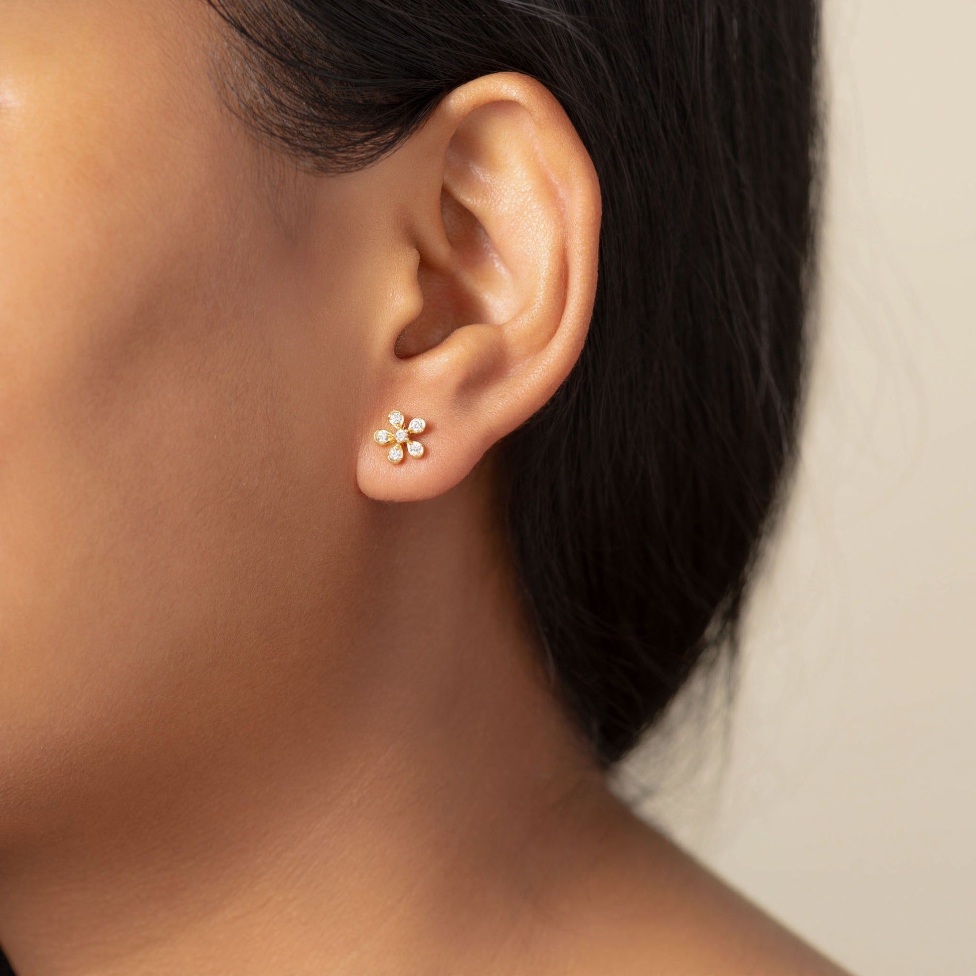 - Stud Details: Floral-shaped with a 1mm AAA grade CZ stone at the center and five surrounding CZ stones as petals.