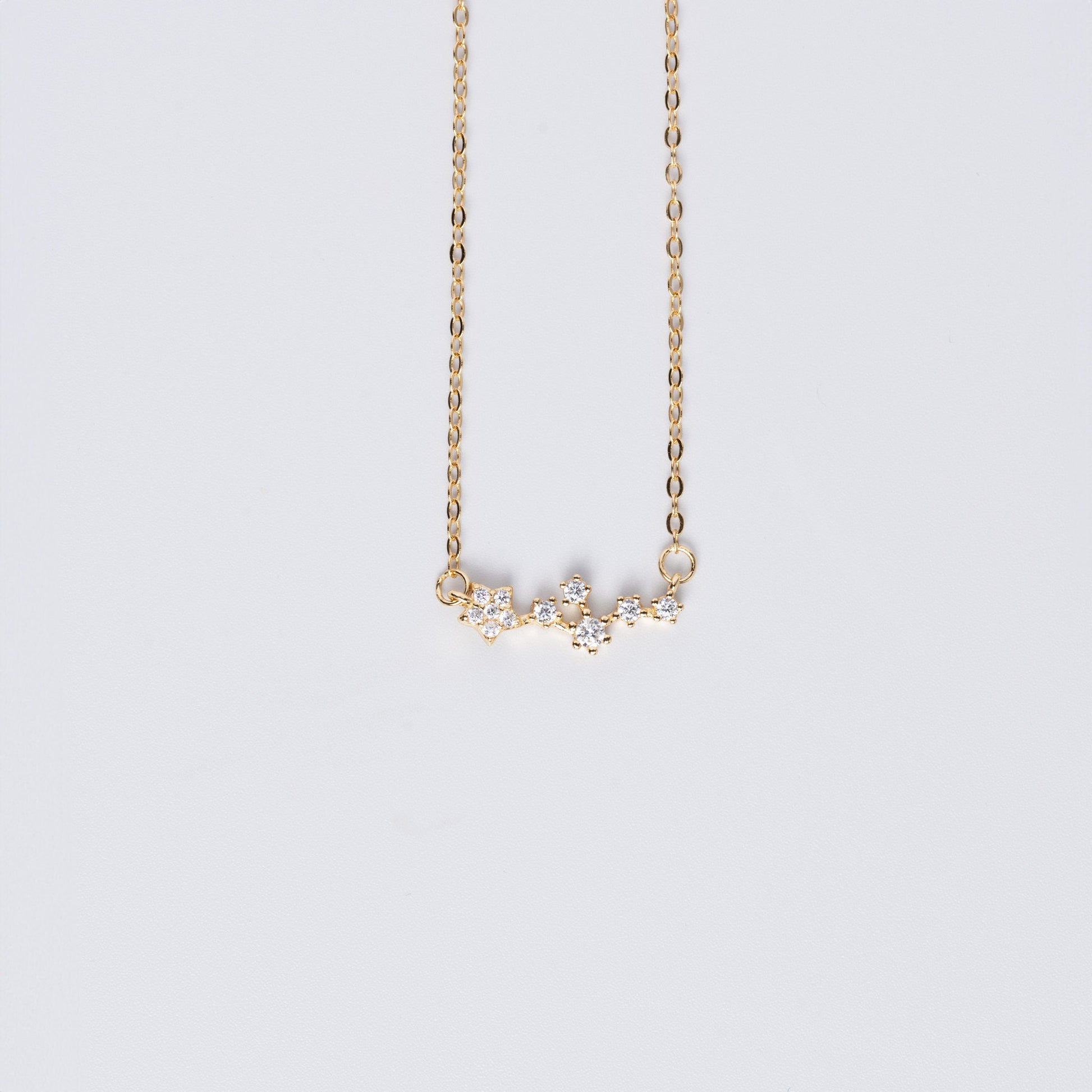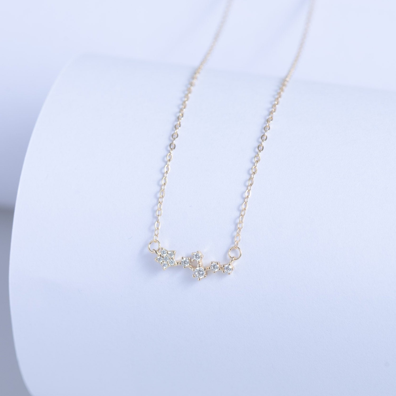 This exquisite necklace mirrors the twinkling stars of the Milky Way, with brilliant AAA grade CZ stones set in a captivating design, which captures the celestial beauty of the night sky. Crafted from 925 sterling silver and 18k gold plated, this pendant exudes a timeless elegance and sophistication. Its delicate structure and radiant stones make it an ideal accessory for both special occasions and everyday wear.